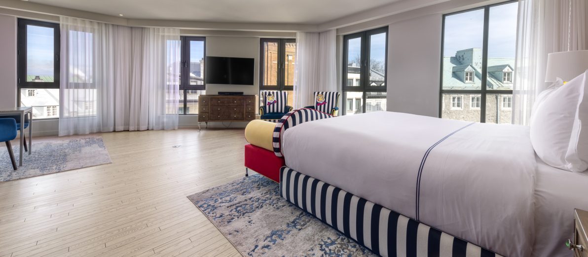 Monsieur Jean est sans contredit l’un des plus grands amateurs du temps des Fêtes et des réjouissances qui l’accompagnent. Pour l’occasion, il n’a pu résister à l’envie folle de vous offrir une chambre à l’image de la magie de Noël dont il raffole tant. Chaque détail a été soigneusement pensé pour évoquer le réconfort et la féérie de cette période unique mêlé à l’expérience luxueuse caractéristique de nos chambres exceptionnelles. La chambre d’hôtel parfaite pour s’offrir un moment enchanté, un chocolat chaud à la main, à deux pas des festivités du Vieux-Québec.
