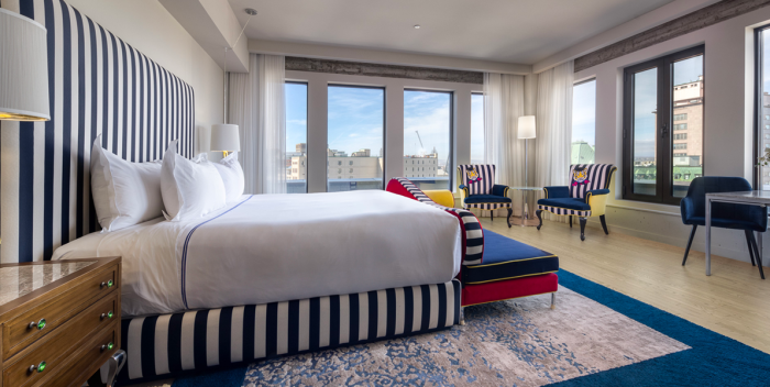 Située au 3e étage, cette chambre d’exception en unité de coin est conçue pour offrir une expérience unique et inoubliable à nos hôtes. Les vues imprenables qu’elle offre sur la ville sont le prélude à un séjour placé sous le signe de la détente et du raffinement. L’intérieur élégant et sophistiqué de cette chambre de luxe est équipé de tout ce dont vous avez besoin pour vous sentir comme chez vous, mais avec le confort et les services haut de gamme que seul Monsieur Jean peut offrir. Le lit king size, orné d’une literie 100% coton, garantit un sommeil réparateur et un réveil en pleine forme.
